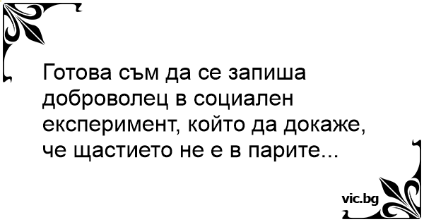Готова съм да се запиша доброволец в социален експеримент, който да докаже, че щастието не е в парите...