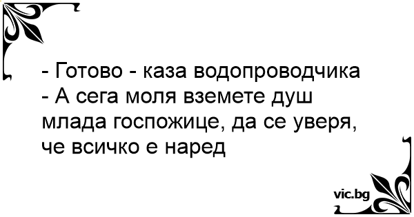 - Готово - каза водопроводчика - А сега моля вземете душ млада госпожице, да се уверя, че всичко е наред