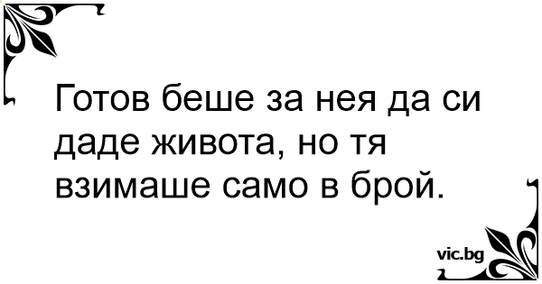 Готов беше за нея да си даде живота, но тя взимаше само в брой.