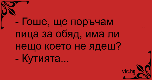 - Гоше, ще поръчам пица за обяд, има ли нещо което не ядеш?