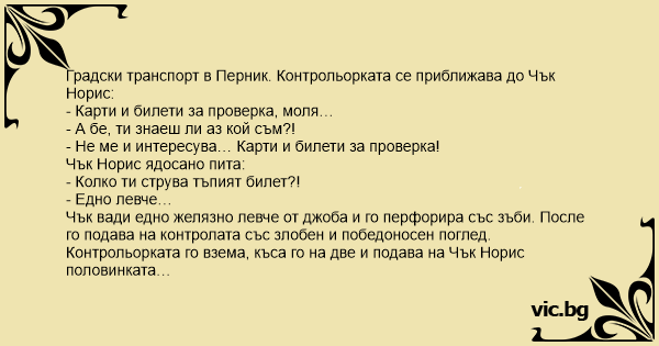 Градски транспорт в Перник. Контрольорката се приближава до Чък Норис:
