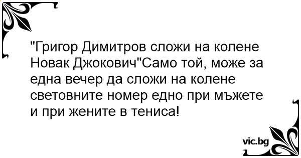 "Григор Димитров сложи на колене Новак Джокович"Само той, може за една вечер да сложи на колене световните номер едно при мъжете и при жените в тениса!