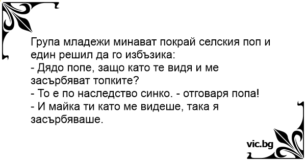 Група младежи минават покрай селския поп и един решил да го избъзика: