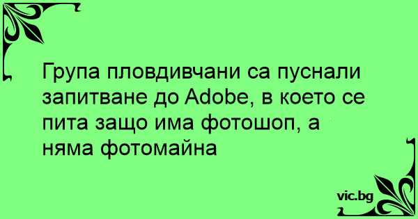 Група пловдивчани са пуснали запитване до Adobe, в което се пита защо има фотошоп, а няма фотомайна