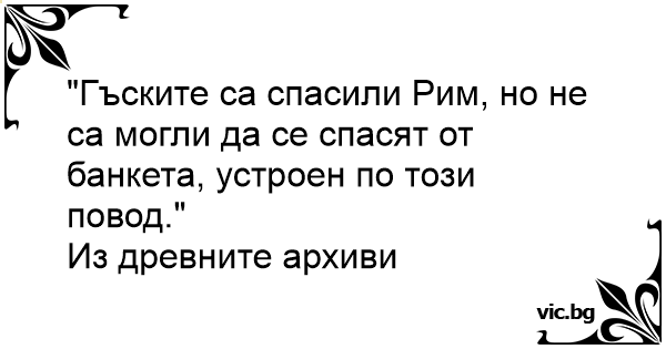 "Гъските са спасили Рим, но не са могли да се спасят от банкета, устроен по този повод."