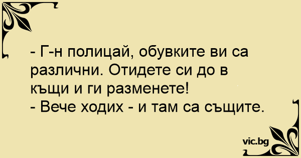 - Г-н полицай, обувките ви са различни. Отидете си до в къщи и ги разменете!