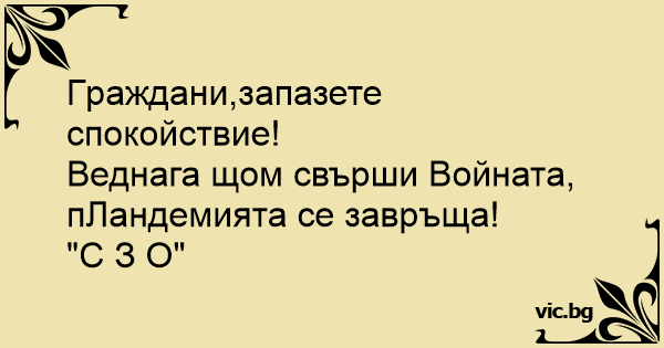 Веднага щом свърши Войната, пЛандемията се завръща!