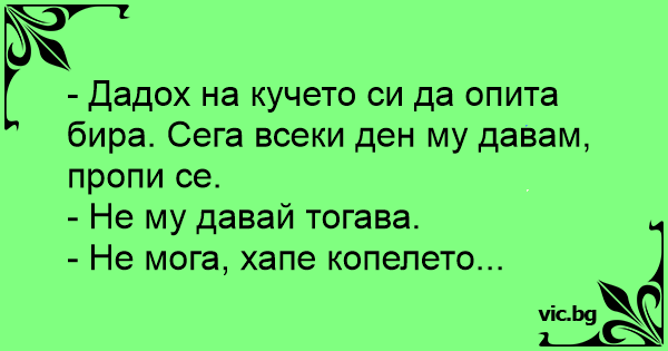 - Дадох на кучето си да опита бира. Сега всеки ден му давам, пропи се.