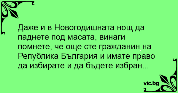 Даже и в Новогодишната нощ да паднете под масата, винаги помнете, че още сте гражданин на Република България и имате право да избирате и да бъдете избран...