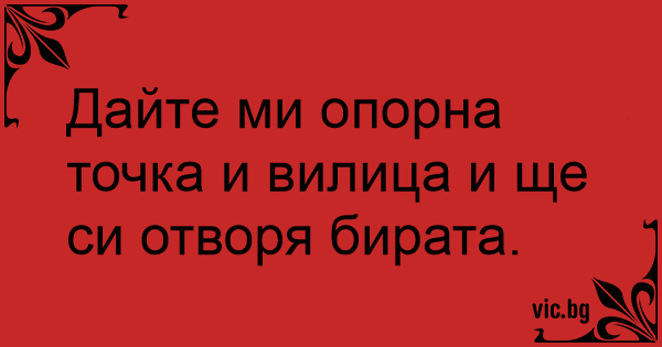 Дайте ми опорна точка и вилица и ще си отворя бирата.
