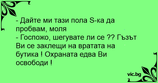- Госпожо, шегувате ли се ?? Гъзът Ви се заклещи на вратата на бутика ! Охраната едва Ви освободи !