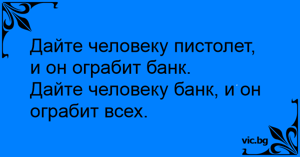 Дайте на човек пистолет и той ще ограби банка. Дайте на човек банка и той ще ограби всички.
