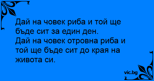 Дай на човек риба и той ще бъде сит за един ден.