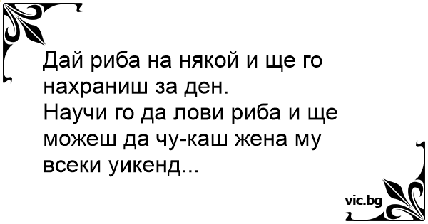 Научи го да лови риба и ще можеш да чуkaш жена му всеки уикенд...