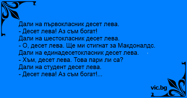 - О, десет лева. Ще ми стигнат за Макдоналдс.