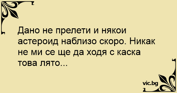 Дано не прелети и някои астероид наблизо скоро. Никак не ми се ще да ходя с каска това лято...