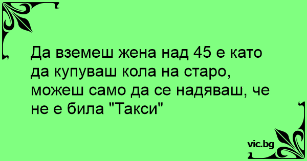 Да вземеш жена над 45 е като да купуваш кола на старо, можеш само да се надяваш, че не е била "Такси"