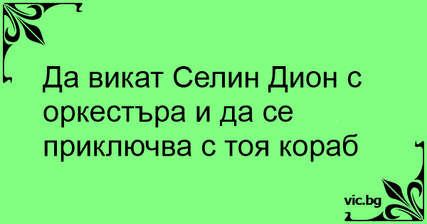 Да викат Селин Дион с оркестъра и да се приключва с тоя кораб