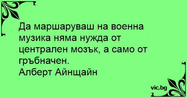 Да маршаруваш на военна музика няма нужда от централен мозък, а само от гръбначен.