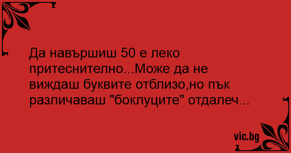 Да навършиш 50 е леко притеснително...Може да не виждаш буквите отблизо,но пък различаваш "боклуците" отдалеч...