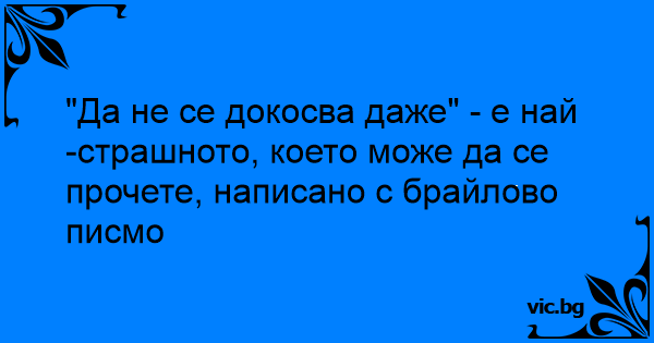 "Не трогать!" - страшно такое прочитать. "Да не се докосва даже" - е най-страшното, което може да се прочете, написано с брайлово писмо 1 0 0