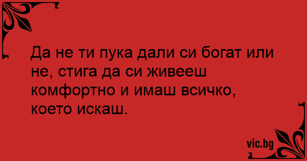Да не ти пука дали си богат или не, стига да си живееш комфортно и имаш всичко, което искаш.