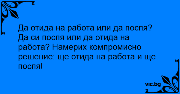 Да отида на работа или да поспя? Да си поспя или да отида на работа? Намерих компромисно решение: ще отида на работа и ще поспя!