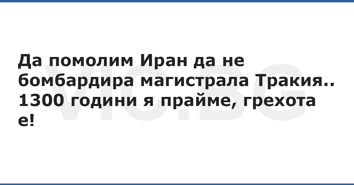 Да помолим Иран да не бомбардира магистрала Тракия..1300 години я прайме, грехота е! 2 0 0 Актуални вицове