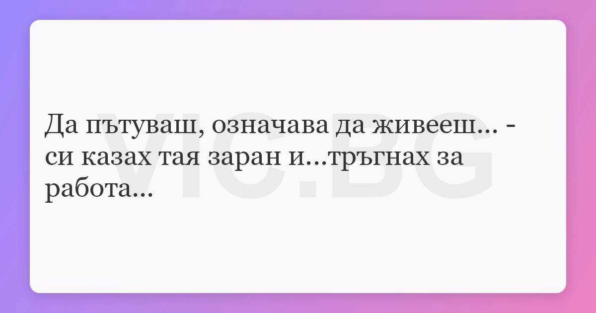 Да пътуваш, означава да живееш... - си казах тая заран и...тръгнах за работа... 1 0 0 Вицове за Работа