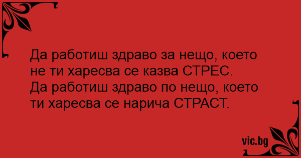 Да работиш здраво за нещо, което не ти харесва се казва СТРЕС.
