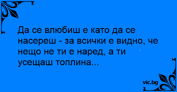 Да се влюбиш е като да се нacepeш - за всички е видно, че нещо не ти е наред, а ти усещаш топлина...