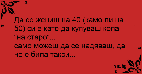 Да се жениш на 40 (камо ли на 50) си е като да купуваш кола “на старо“...
