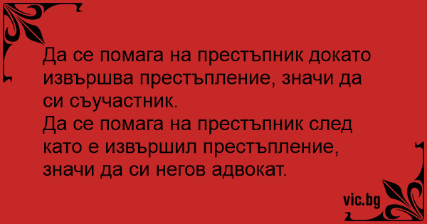 Да се помага на престъпник след като е извършил престъпление, значи да си негов адвокат.