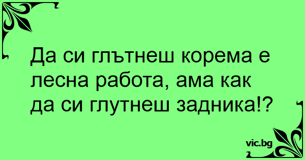 Да си глътнеш корема е лесна работа, ама как да си глутнеш задника!?