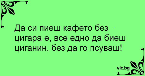 Да си пиеш кафето без цигара е, все едно да биеш циганин, без да го псуваш!