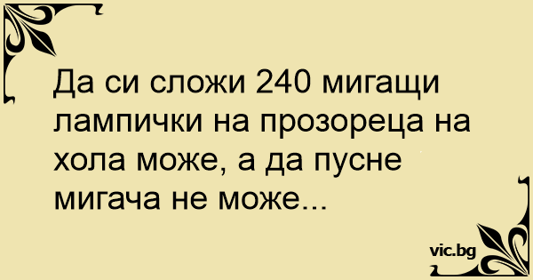 Да си сложи 240 мигащи лампички на прозореца на хола може, а да пусне мигача не може...
