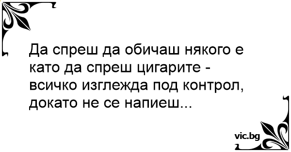 Да спреш да обичаш някого е като да спреш цигарите - всичко изглежда под контрол, докато не се напиеш...