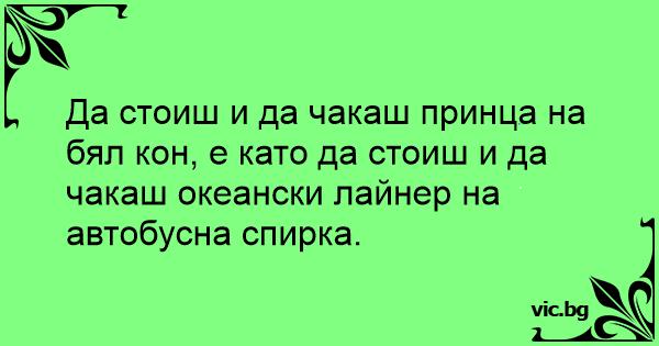 Да стоиш и да чакаш принца на бял кон, е като да стоиш и да чакаш океански лайнер на автобусна спирка.