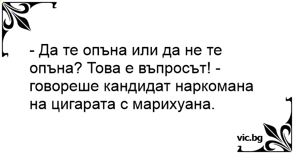 - Да те опъна или да не те опъна? Това е въпросът! - говореше кандидат наркомана на цигарата с марихуана.