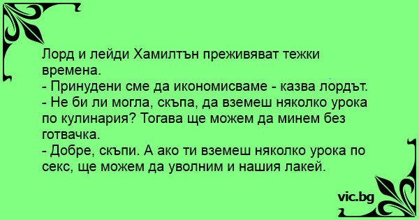 - Добре, скъпи. А ако ти вземеш няколко урока по cekc, ще можем да уволним и нашия лакей.