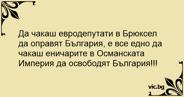 Да чакаш евродепутати в Брюксел да оправят България, е все едно да чакаш еничарите в Османската Империя да освободят България!!!