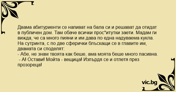 - А! Остави! Мойта - вещица! Изпърдя се и отлетя през прозореца!