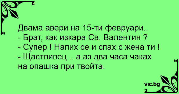 • Вицове от Facebook от нашата страница https://www.facebook.com/www.vic.bg
