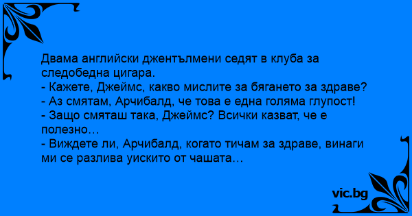 - Виждете ли, Арчибалд, когато тичам за здраве, винаги ми се разлива уискито от чашата…