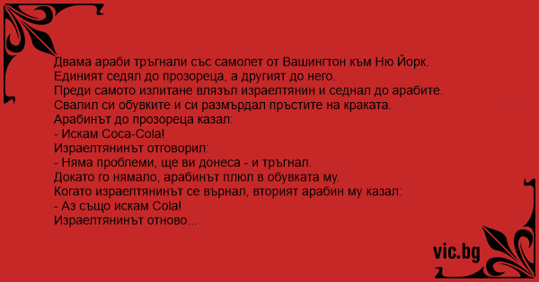 Двама араби тръгнали със самолет от Вашингтон към Ню Йорк.