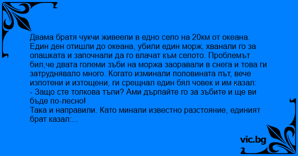 Двама братя чукчи живеели в едно село на 20км от океана.