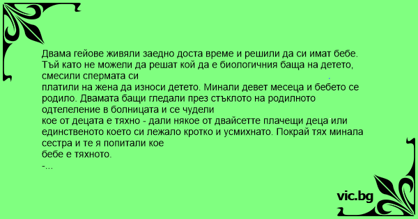 Двама гейове живяли заедно доста време и решили да си имат бебе.