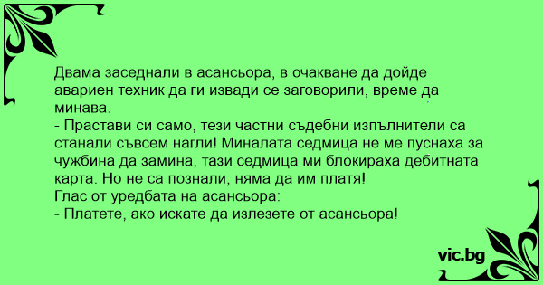 • Вицове от Facebook от нашата страница https://www.facebook.com/www.vic.bg