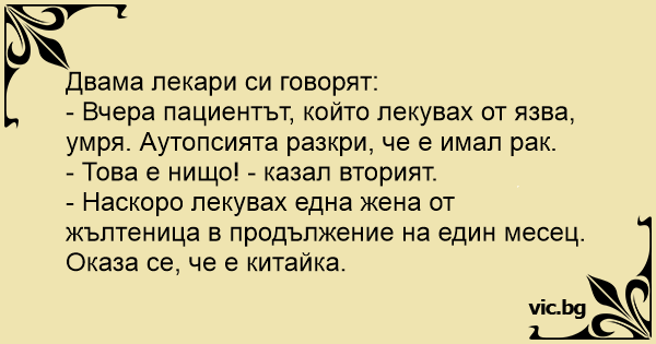 • Вицове от Facebook от нашата страница https://www.facebook.com/www.vic.bg