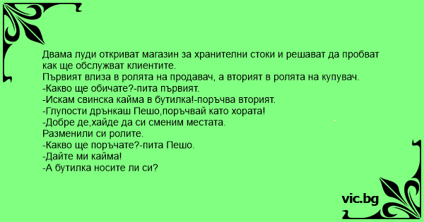 • Вицове от Facebook от нашата страница https://www.facebook.com/www.vic.bg